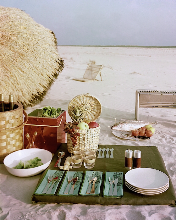 Description: A picnic at a beach with designer homewares.
