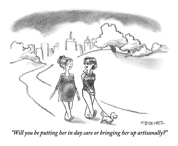 Caption: "Will you be putting her in day care or bringing her up artisanally?"