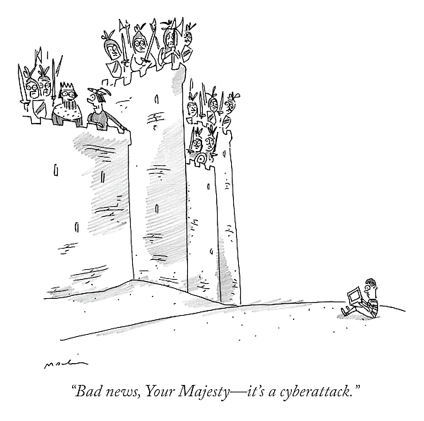 Caption: "Bad news, Your Majesty"it's a cyberattack."