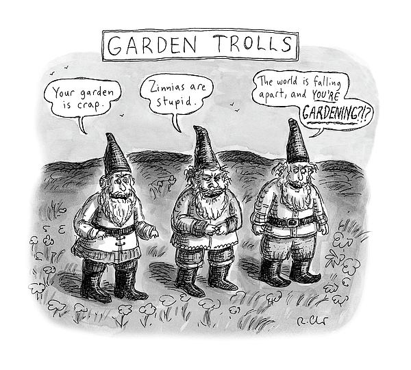Description: Garden Trolls Three garden gnomes talk like trolls from the Internet who negatively judge nearly everything.