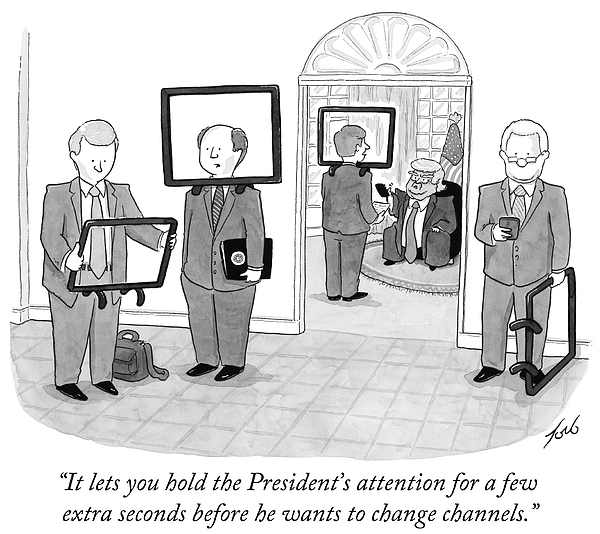 Caption: "It lets you hold the President’s attention for a few extra seconds before he wants to change channels."
