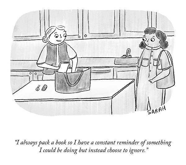 Caption: “I always pack a book so I have a constant reminder of something I could be doing but instead choose to ignore.”