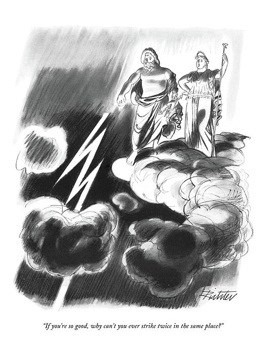 Caption: "If you're so good, why can't you ever strike twice in the same place?"