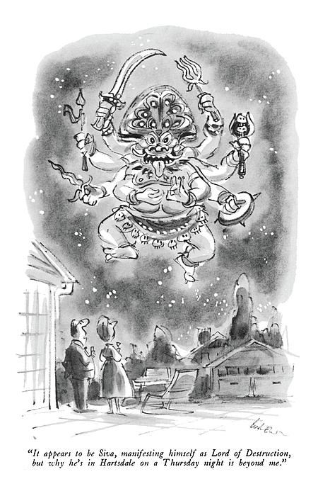 Caption: "It appears to be Siva, manifesting himself as Lord of Destruction, but why he's in Hartsdale on a Thursday night is beyond me."