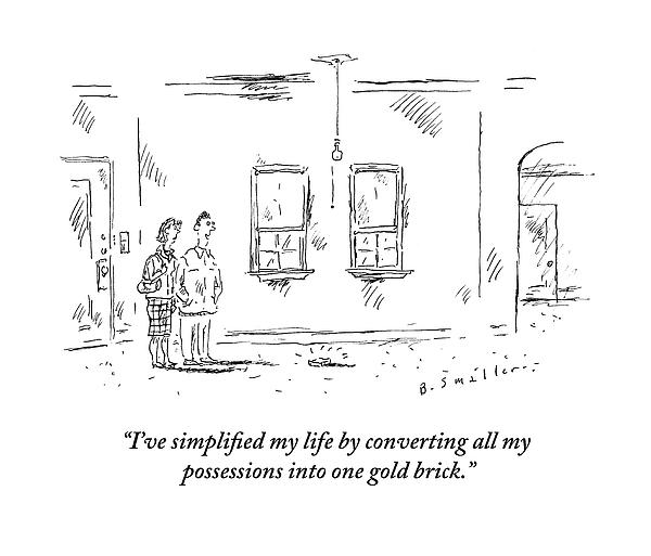 Caption: "I've simplified my life by converting all my possessions into one gold brick."