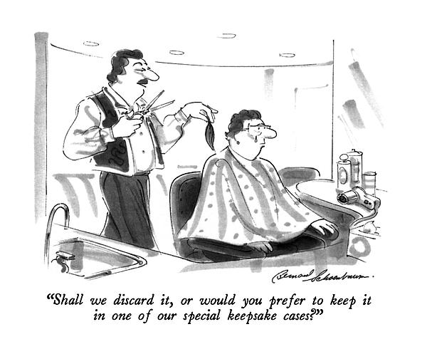 Caption: "Shall we discard it, or would you prefer to keep it in one of our special keepsake cases?"