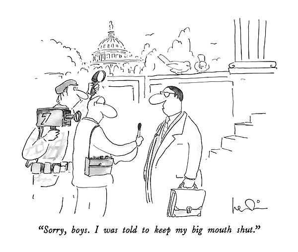 Caption: "Sorry, boys. I was told to keep my big mouth shut."