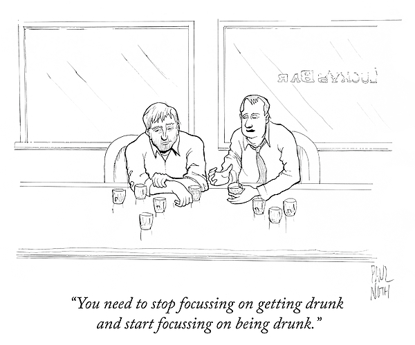 Caption: "You need to stop focussing on getting drunk and start focussing on being drunk."