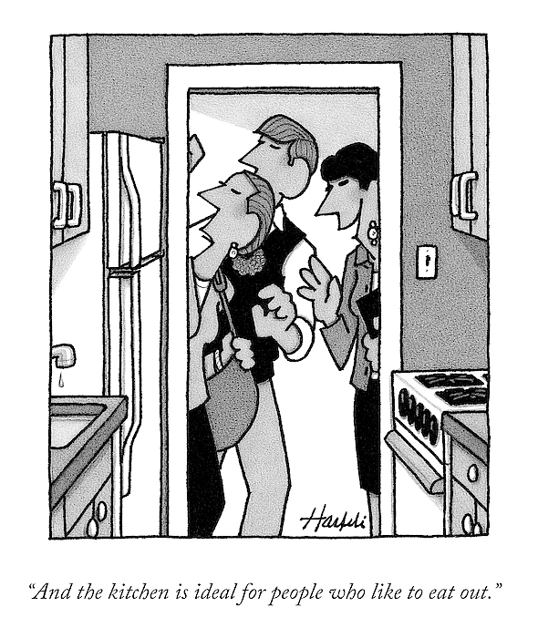 Caption: "And the kitchen is ideal for people who like to eat out."