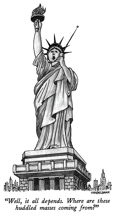 Caption: “Well, it all depends. Where are these huddled masses coming from?”