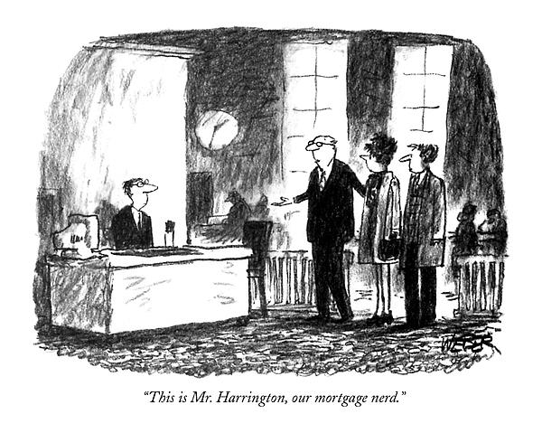 Caption: "This is Mr. Harrington, our mortgage nerd."