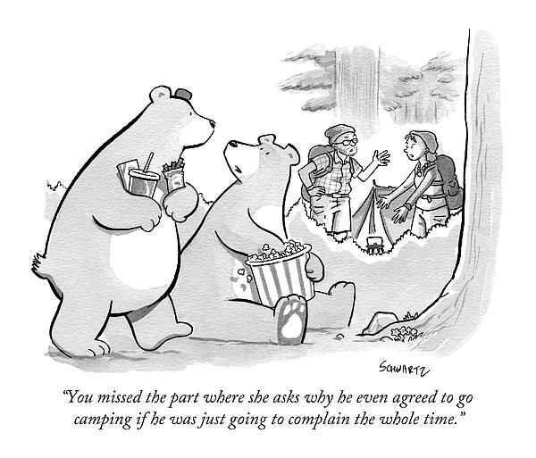 Caption: "You missed the part where she asks why he even agreed to go camping if he was just going to complain the whole time."